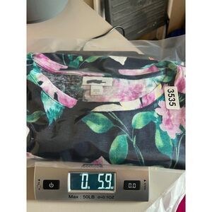 J. Jill Love Linen Tropical Floral Side Tie Short Sleeve Top Blouse Large Navy