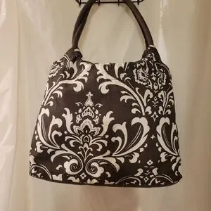 Buckhead Bettie is a beautiful brown and white tote for all seasons. Has a deep entry. 100 % canvas material. m