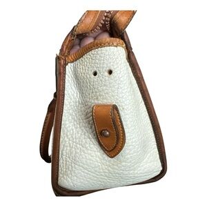 Elevate your style with the Dooney & Bourke White and Tan Leather Satchel. This elegant bag features a classic design with durable leather construction. Perfect for any occasion, it combines functionality with timeless fashion.
