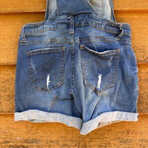 Stylish and comfortable I & M Jeans denim overalls shorts with a cuffed design. Perfect for casual outings or summer adventures. Easy to pair with any top for a chic look.