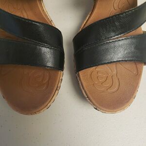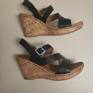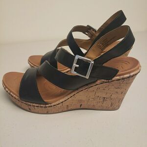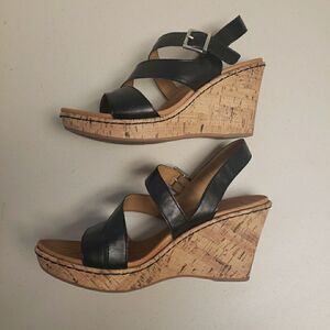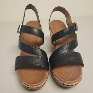Born Concept B.O.C. Schirra Wedge Black Cork Ankle Strap Sandals Women Size 10M