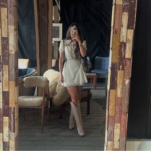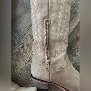 Rock em camel snip toe suede cowboy boots