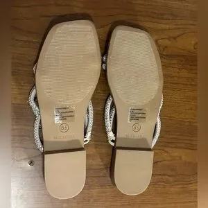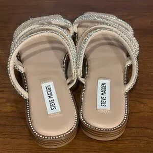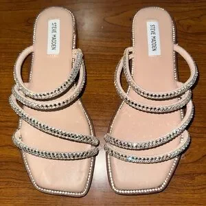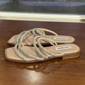 Steve Madden Starie Rhinestone Silver Strappy Square Toe Sandals Size 8.5 NWOT