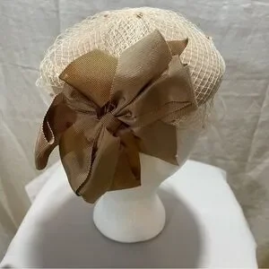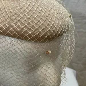 Beautiful camel colored beret with veil netting. 1950’s style. Straight from grandma’s closet!