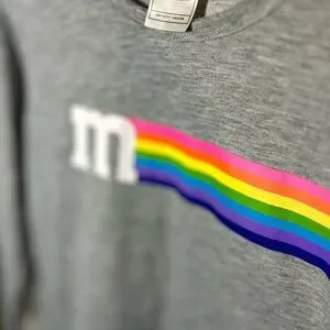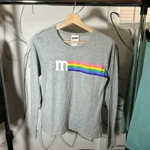 M&M Gray Long Sleeve Shirt with Rainbow Design Size Women’s Medium