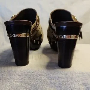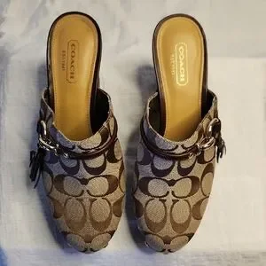 Coach Brown Mules with Signature Monogram and Chunky Heel