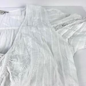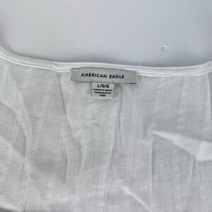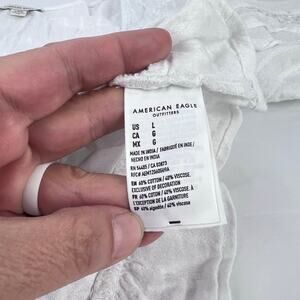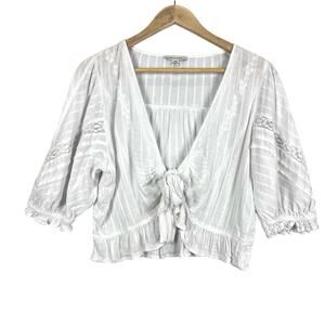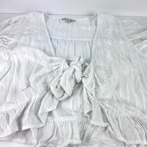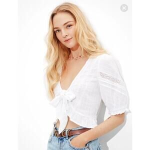 American Eagle V-Neck Gauzy Lace Tie-Front White Blouse Top BOHO L