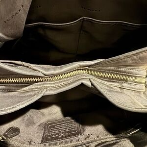 Elegant and versatile, this Coach bag features a stylish black and gray design. Perfect for any occasion, it combines functionality with a touch of luxury.