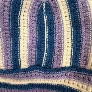 Y2K Crochet Halter Top Purple Blue Stripe Tie Front Festival Aesthetic Large