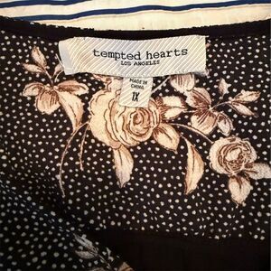 Tempted Hearts Los Angeles Women's 1X Black Floral Blouse V-Neck Zipper