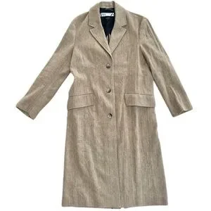 Brand new! This coat is COOL. It's such a vibe. I love love love this fabric so much. It has a nice weight to it so it drapes really nicely, and theres a really subtle herringbone pattern to it. The color is a warm brown with an olive green undertone. Its beautifully made, with partial lining inside. It's the perfect fall/winter trench that you could easily wear in the spring/summer too. It's a classic coat that will happily live in your closet for many many years.