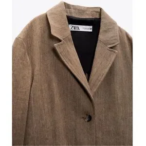 NWOT Zara Rustic Brown Linen Cotton Fall/Winter Trench Coat - Size XS