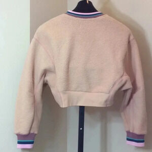 BDG Urban Outfitters Pink Cropped V-Neck Long Sleeve Sweatshirt Top