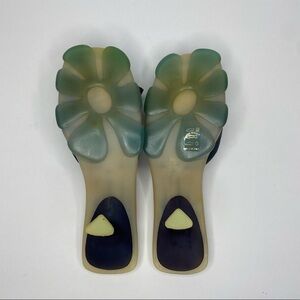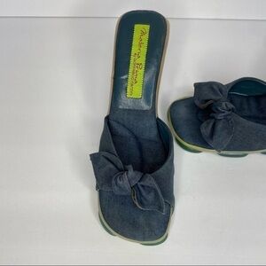 These are in excellent condition. They have a denim fabric upper with a rubber bottom. Very comfortable. Size 7. 3” heel.