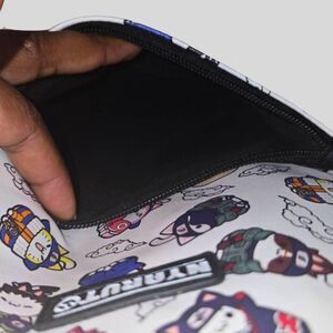 Show off your anime style with this Naruto Shippuden Nyaruto Mini Backpack! Featuring an all-over print of fan-favorite Naruto characters reimagined as cute ninja cats—including Kakashi, Itachi, Gaara, Naruto, and more—this kawaii backpack is perfect for anime lovers, collectors, and cosplay fans. The white polyurethane exterior is durable and easy to clean, with swirling cloud graphics and a bold NYARUTO patch. Includes a front zipper pocket with a cloud-shaped charm, two side pockets, an interior zipper pouch, and adjustable shoulder straps for comfort.