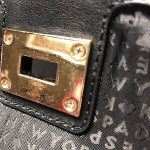 Only Callout is on the gold tone hardware clasp.