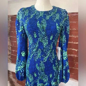 Never Fully Dressed Blue Scarlet Midi Dress Dropped Waist Smocked