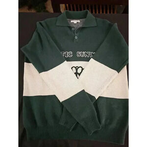 Pacsun Green White Petal Button Placket Graphic Design Long Sleeve Polo Sweater Type Small