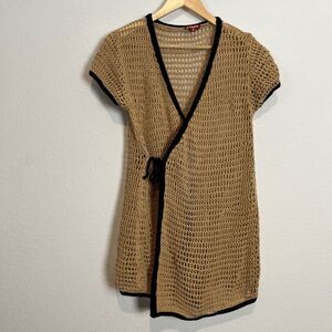 Staud Spritz natural Black Trim Tie Waist Cover-Up Dress Women's Size Medium