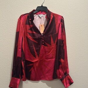NWT CROSBY by Mollie Burch Leland Satin Faille Star Print Mock Neck Blouse