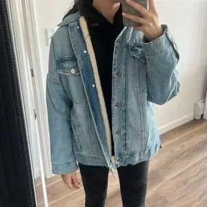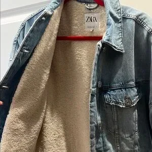 Zara Light Blue Sherpa Lined Denim Oversized Jean Jacket size small women’s