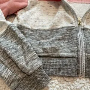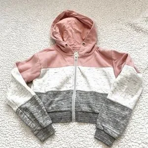 Stay cozy and stylish in this trendy tri-color zip-up hoodie. Featuring a chic combination of light pink, white, and gray, this cropped sweatshirt is perfect for adding a pop of color to your wardrobe. The lightweight fabric makes it ideal for layering, while the zip-up design allows for easy on-and-off. With a flattering fit, this size small hoodie is perfect for casual outings, workouts, or lounging at home. Pair it with high-waisted jeans or your favorite leggings for a complete look that’s both comfortable and fashionable. 😎 White drawstring is in the sweater, but not shown in photo.
