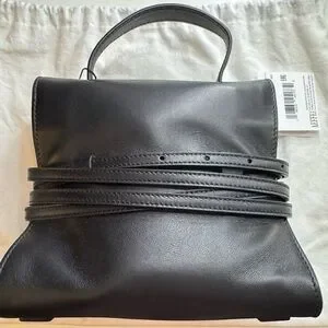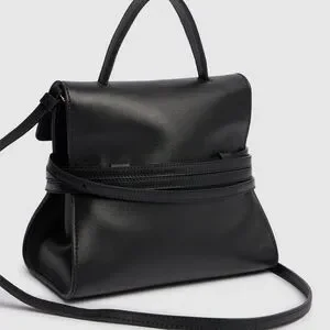 NAPPA HANDBAG, IN SMALL SIZE AND WITH A DELIBERATELY SOFT CONSTRUCTION, MAKING IT SURPRISINGLY LIGHT. A DISTINCTIVE FEATURE IS THE FULLY DETACHABLE DECORATIVE BELT THAT WRAPS AROUND THE BAG'S BODY.