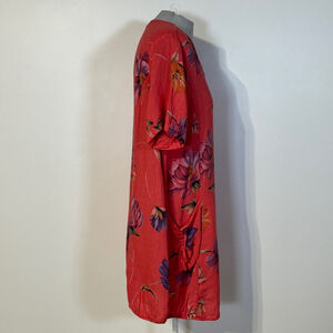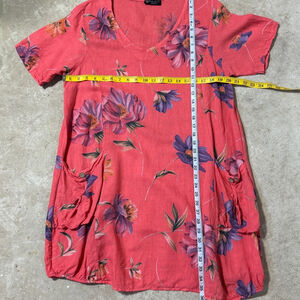 Bella Amore Linen Dress / Tunic Top Women’s Medium Orange Red Purple Pockets Floral V-Neck