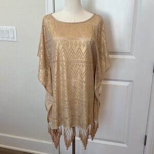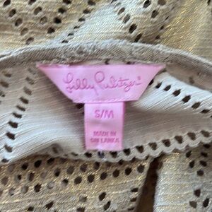 LILLY PULITZER Jerrica Mini Caftan Coverup S/M Gold Foiled Lace Tassels