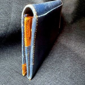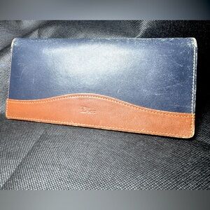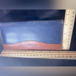 Vintage Dior Bifold Wallet Two Tone Leather Navy Cognac Long Wallet