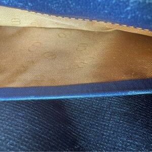 Rare vintage Christian Dior long bifold wallet in iconic two tone navy blue and cognac brown leather featuring signature Dior wave panel design and subtle logo embossing on both the front and interior crafted in the late 1980s to early 1990s with full grain leather exterior and satin interior lining with repeating CD monogram this heritage Christian Dior piece includes six card slots a clear ID window dual full length bill compartments and a zippered coin pouch with original hardware and precision topstitching this elegant mens or unisex wallet is ideal for travel business or everyday use Dior logo stamped in two locations confirming authenticity and heritage design minor wear to edges and corners consistent with age interior remains clean and lining intact incredibly hard to find Dior accessories from this era in this color combo this is a timeless collector piece that blends vintage style with luxury utility measures approximately 7 inches wide by 4 inches tall fits comfortably in a coat pocket bag or clutch