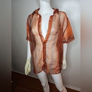 Mens ASOS DESIGN Regular Fit Sheer Paisley Shirt Retro Indie Boho Western Size L