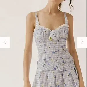 This charming floral gingham corset top features delicate lace details and a flattering fit. Perfect for adding a touch of elegance to your wardrobe. size medium brand new without tag just been sitting in my closet item comes from a smoke free home