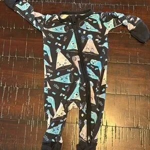 This stylish one-piece from Birdies showcases a vibrant geometric pattern in blue and black, offering a cozy fit with its long sleeves and enclosed feet. The round neckline enhances its classic appeal, making it an ideal choice for comfort and style.