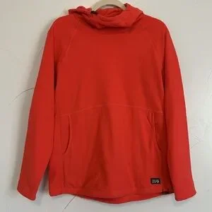 Vibrant orange grid fleece pullover hoodie by Mountain Hardwear. Perfect for outdoor adventures.
