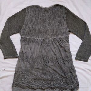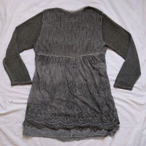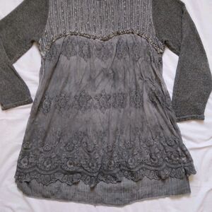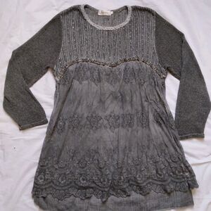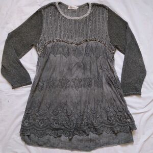 Simply Couture Top Tunic Gray Long Sleeve Lagenlook Shabby Cottage Womens 2XL