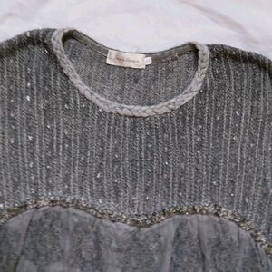 Simply Couture Top Tunic Gray Long Sleeve Lagenlook Shabby Cottage Womens 2XL.