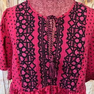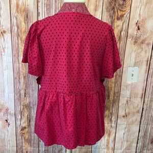 Knox Rose XL Red & Black with Poke Dot Design Tunic Blouse with Cape Sleeves
