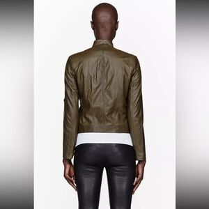 Helmut Lang Ammo Somber Green Washed Moto Lamb Leather Jacket