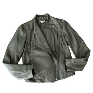Helmut Lang Ammo Somber Green Washed Moto Lamb Leather Jacket Small