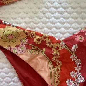 red, yellow, pink floral bikini set. Ruffled top and matching bottoms. Zimmermann size 1 equivalent to a small