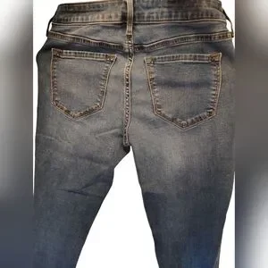 These Old Navy skinny jeans feature a classic blue hue with a stylish distressed finish, offering a modern and versatile look. The denim is crafted to provide a comfortable fit with a tapered leg design, perfect for everyday wear. The faded detailing adds a touch of character, making these jeans a must-have for any casual wardrobe.