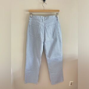 New with tags, blue and white striped denim, high rise relaxed loose fit. Regular inseam.
