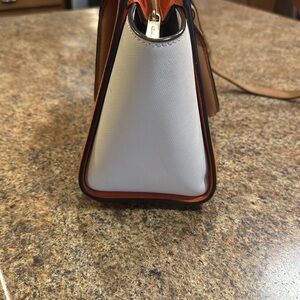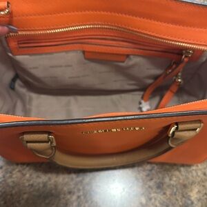 Michael Kors Leather Crossbody Bag With Handles Top Zipper Closure Orange White
