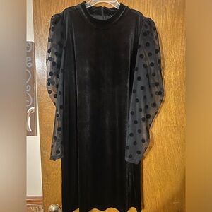 straight velour dress with sheer lace bubble sleeves with polka dots