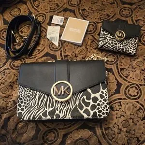Michael Kors medium Carmen black leather & haircalf handbag & wallet set. New never used. Tags aren't attached but are included along with the care card. Crossbody strap is included. Bag retailed$598. Matching wallet retailed $258. Open to offers. Bundle & save.
