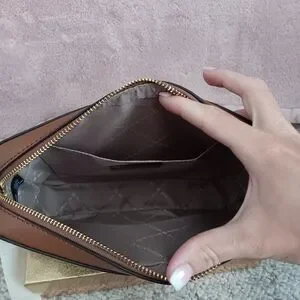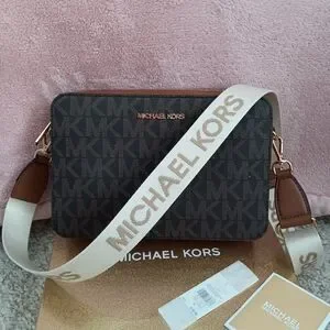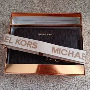 Ultra stylish and versatile, this Michael Kors crossbody bag is perfect for any occasion. Featuring a rich brown color, it adds a touch of elegance to your outfit. The wide, adjustable, nylon strap ensures comfort and convenience. New in box. Perfect for gifting!