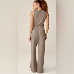 Beyond Yoga Jetsetter Ribbed V-Neck Jumpsuit Birch Color taupe wide leg M