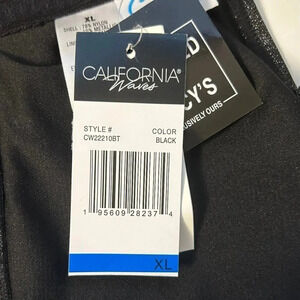 California Waves Metallic Shine Black Bandeau Neckline Bikini Top Size XL Women's Swimwear