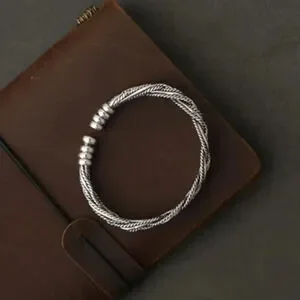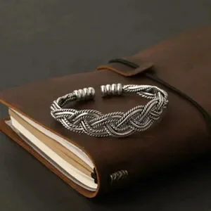 925 Sterling Silver Braided Modern Twist Cuff Bracelet Silver Bangle Bracelet
